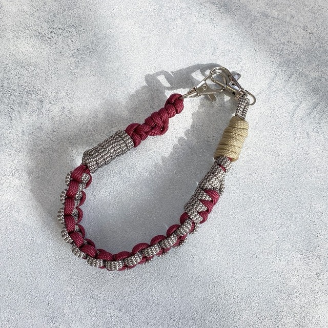 パラコード ストラップ ワインレッド×ベージュ 他カラー・・・https://koyuan.base.shop/categories/5259696 存在感のある、アクセサリー感覚で使える ハンドストラップです* 両端にフック2個つき。 スマホに取り付けても、キーホルダーとして使用しても。 アクセサリー感覚で使用していただけます♪ ストラップを手首に通すことで手が空き、 写真撮影やアウトドアでの場面で活躍します。 素材は7芯のパラコードを使用し、 色んな編み方で一つ一つしっかり編んでいます。 パラコードはパラシュートを吊るすために作られたコードで 丈夫で軽い素材です。 全長(金具から金具まで):約30cm ハンドメイド作品ですのでご理解の上ご購入下さい。 【商品に関して】 ・ストラップのみの販売です。ケースは付属しておりません。 ・スマホに取り付けて使用する際はお手持ちのケースにストラップホルダー(オプション150円で販売中)を使用して取り付けて下さい。 ※ケースが軟らかいものの場合、外れる場合があります! ・洗濯用洗剤などで手洗いが可能です。 ・ハンドメイドの作品です。サイズに個体差が生じる場合があります。 【使用上の注意】 ・強く引っ張たり振り回すと故障や事故の原因になりますのでご注意ください。 ・使用する際は、首に絡んだり、ひっかけたり、巻き込まれたり他の物にぶつけないよう安全にご注意ください。 ・お子様やペットの手の届かない所で使用保管してください。 ・本来の用途(ストラップ)以外に使用しないでください。 ・使用中に起こった事故や、スマートフォンの破損や故障に関して一切の責任を負いかねますので予めご了承下さい。 【その他】 営業時間:9:00~16:30 定休日:土日、年末年始 入金確認後5日以内に商品を発送いたします。 発送の際、リサイクルの梱包材を使用させていただく場合がございます。予めご了承ください。