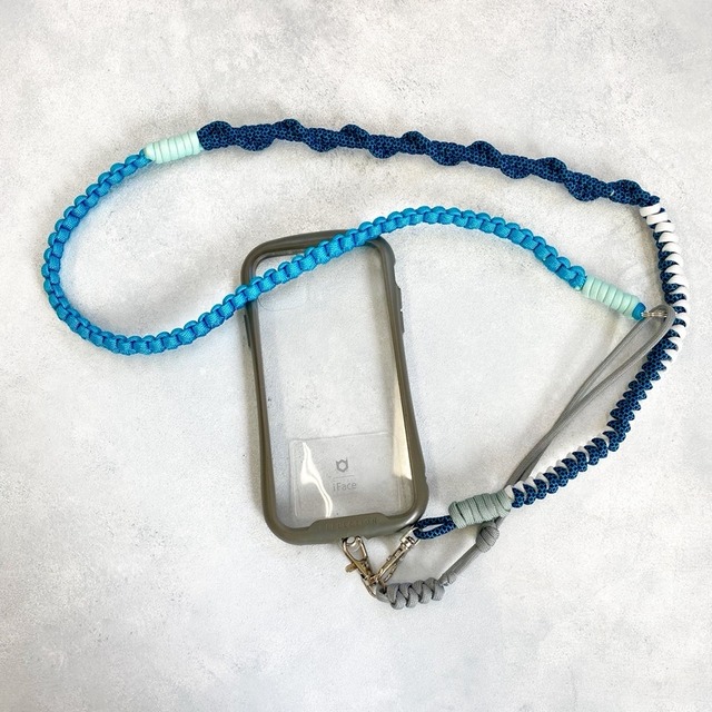 パラコードスマホショルダーストラップ【セルリアンブルー・ライトベージュ・グレーブラウン】 他カラー・・・https://koyuan.base.shop/categories/5259695 ちょうどいい存在感の、アクセサリー感覚で使える スマホ用ショルダーストラップです* 他と被らないかわいいスマホショルダーが欲しい という思いから生まれました! 肩にかけた時、前後で印象が変わるように 配色・デザインをしているので、2パターンで楽しめます。 カジュアル、シンプル、スポーティーなファッションが お好きな方に特におすすめです! 普段使いはもちろんですが、 ・ポケットがないお洋服の時 ・スマホ落下・紛失防止に ・旅行やレジャーの際 などに便利です。 素材は7芯のパラコードを使用し、 色んな編み方で一つ一つしっかり編んでいます。 パラコードはパラシュートを吊るすために作られたコードで 丈夫で軽い素材です。 重さは気にならないくらい軽く、 ある程度幅もあるので、肩への負担が少なく 使用していただけると思います。 細い部分の結び目をつまんで引っ張ることで 長さ調節もできるように作っているので、 首からかけても、肩から斜めにかけても快適な長さになっています* それでも短い・長い場合の調節方法をInstagramに 動画で掲載していますのでそちらもご覧ください^^ サイズ・・・全長約70cm~80cm 商品に関して ・着用画像はイメージです。 ・スマホショルダーのみの販売です。ケースは付属しておりません。 ・お手持ちのケースにストラップホルダー(オプション150円で販売中)を使用して取り付けて下さい。 ※ケースが軟らかいものの場合、外れる場合があります! ・長さの調整ができます。結び目をつまみ、左右に引っ張って下さい。 ・洗濯用洗剤などで手洗いが可能です。 ・ハンドメイドの作品です。サイズに個体差が生じる場合があります。 使用上の注意 ・強く引っ張たり振り回すと故障や事故の原因になりますのでご注意ください。 ・首や肩から吊り下げて使用する際は、首に絡んだり、ひっかけたり、巻き込まれたり他の物にぶつけないよう安全にご注意ください。 ・お子様やペットの手の届かない所で使用保管してください。 ・本来の用途(スマホショルダー)以外に使用しないでください。 ・使用中に起こった事故や、スマートフォンの破損や故障に関して一切の責任を負いかねますので予めご了承下さい。 【その他】 営業時間:9:00~16:30 定休日:土日 入金確認後5日以内に商品を発送いたします。 発送の際、リサイクルの梱包材を使用させていただく場合がございます。予めご了承ください。